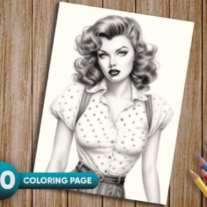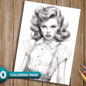 Step back in time with our captivating collection of 1940s Women Beauties Portrait Coloring Pages designed for adults. Relive the elegance and glamour of the 1940s with this set of exquisite grayscale illustrations that pay homage to the beauty and grace of women from that era. This downloadable grayscale coloring book offers an immersive and nostalgic coloring experience that is perfect for any vintage enthusiast.