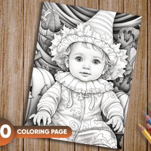 Get ready for some Halloween fun with our set of 20 adorable and spooky Halloween Baby Coloring Pages. Perfect for adults and kids alike, these grayscale illustrations are ready to ignite your creativity and bring a touch of Halloween magic to your coloring adventures.