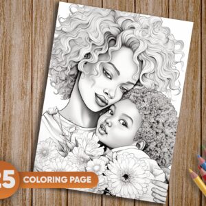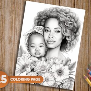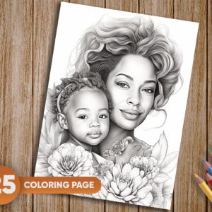 Embrace the heartfelt beauty of Black Motherhood with our collection of 25 captivating coloring pages. Celebrate the unique bond between mothers and their children through exquisite grayscale illustrations, capturing the moments of joy, tenderness, and love shared between mothers, daughters, and sons. This coloring book is a tribute to the cherished relationships that define the essence of family.