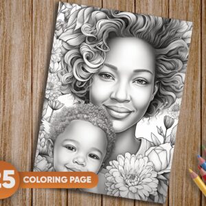 25 Unique Grayscale Illustrations: Each page portrays the intricate connections between mothers and their children, offering a diverse range of coloring opportunities.