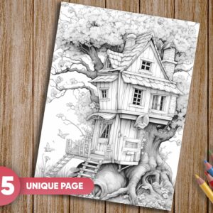 Experience the joy of coloring as you journey through these enchanting realms. Whether you seek relaxation, creative expression, or a shared coloring adventure, these grayscale coloring pages offer a magical escape into a world where fairy homes and nature flourish together.