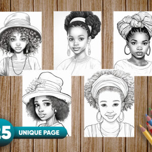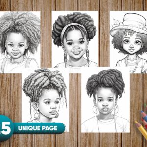 Celebrate the beauty of black girls with this set of 25 cute grayscale coloring pages.