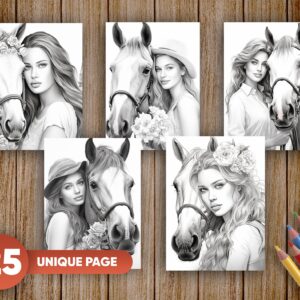 Immerse yourself in the enchanting bond between humans and horses with our “25 Girls With Horse Coloring Pages” collection. This grayscale coloring book is a celebration of the timeless connection between girls and these magnificent animals, offering an instant escape into a world of creativity and beauty. ✨ Available for immediate download in PDF and JPEG formats.