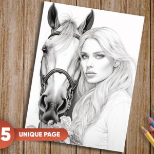 Whether you’re a seasoned colorist or new to the world of coloring, these grayscale images offer an engaging platform to explore shading, highlights, and intricate details, resulting in captivating artworks that showcase the bond between humans and horses. ✨