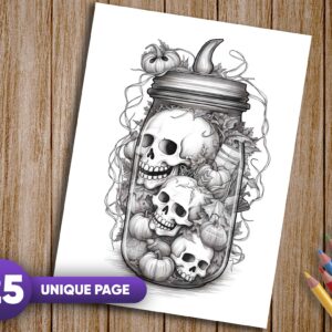 Experience the joy of coloring as you immerse yourself in the whimsical world of Halloween captured in jars. Whether you seek artistic relaxation, creative expression, or a shared coloring adventure, these grayscale coloring pages offer an enchanting journey through the festive essence of Halloween.