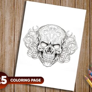 Each page showcases a different skull design, each with its own intricate patterns and details. From ornate and decorative skulls to dark and gothic-themed designs, you’ll find a variety of skull art that caters to various tastes and preferences.