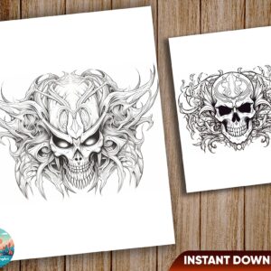 This captivating collection features high-quality grayscale drawings of skulls. The grayscale coloring pages provide a different coloring experience, allowing you to explore various shading techniques and create stunning, lifelike skull illustrations.