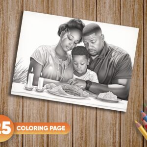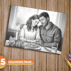 25 Unique Grayscale Illustrations: Each page captures the essence of Thanksgiving with scenes of prayer, reflection, and holiday warmth, offering a wide array of coloring experiences.