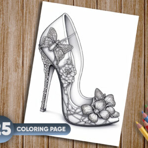 Step into the world of style and creativity with our collection of 25 Women Shoes Fashion Coloring Pages for adults. Unleash your artistic flair while immersing yourself in the realm of fashion-forward footwear. This instant download grayscale coloring book offers a fantastic way to relax, rejuvenate, and explore the vibrant world of women’s shoes through your own unique color palette.
