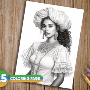 Brazilian Women in Traditional Attire: Explore the rich cultural heritage of Brazil as you color 30 stunning illustrations of Brazilian women dressed in traditional clothing. From the intricate patterns of Bahia to the elegance of Rio de Janeiro’s Carnival costumes, you’ll be transported to the heart of Brazil.