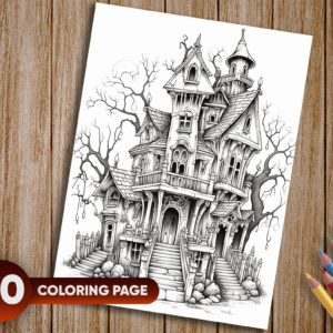 Suitable for All Ages: Whether you’re a seasoned coloring enthusiast or a curious child, these haunted house illustrations are designed to delight both adults and kids alike.