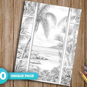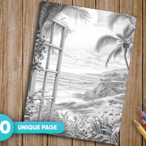 Escape to a world of relaxation and natural beauty with our “30 Window to Tropical Paradise Coloring Pages for Adults.” This grayscale coloring book offers a serene and immersive experience, allowing you to bring the tranquil ambiance of tropical paradises to life with your own creative touch. ✨ Available for instant download in both PDF and JPEG formats.