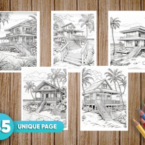 Immerse yourself in the serene beauty of the “35 Beach Houses Coloring Collection.” This captivating coloring book showcases 35 intricately detailed illustrations of charming beach houses, inviting you to embark on a relaxing stroll along the shore.