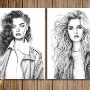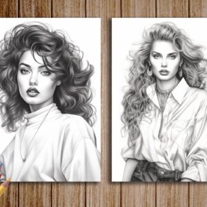 Step into a nostalgic time capsule with our “Beautiful 90s Women Coloring Pages” collection, designed to take you back to the iconic era of the 90s! Relive the magic of this vibrant decade and celebrate its unique aesthetic with our digital grayscale coloring book, available for instant download in PDF/JPEG format.