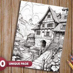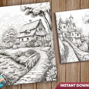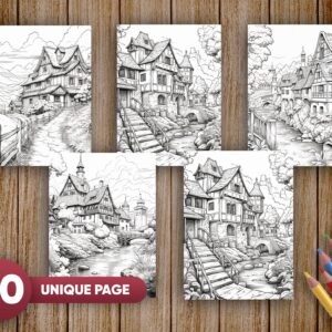 Step into the enchanting world of rural beauty and bring its magic to life with “Village Charm 40 Coloring Pages.” This unique coloring book offers the warmth and serenity of a tranquil countryside village. Filled with 40 different designs showcasing the wonders of nature, historical architecture, and picturesque country scenes, this book invites you to unleash your creativity and add your own colors to these charming illustrations.