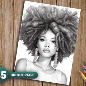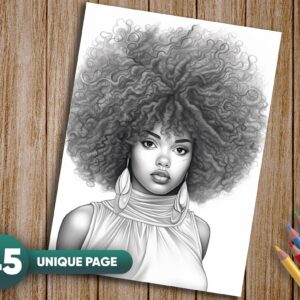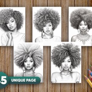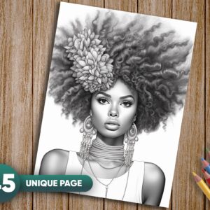 45 meticulously crafted grayscale coloring pages featuring beautiful Afro women