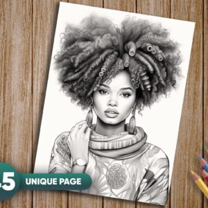 Each page is a canvas to explore the rich tapestry of beauty, culture, and heritage represented by these Afro women. These grayscale illustrations provide a unique platform to experiment with shading, highlights, and depth, resulting in captivating artworks that honor the beauty of diversity. ️ ‍ ✨