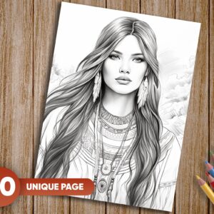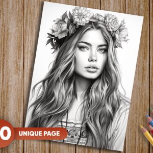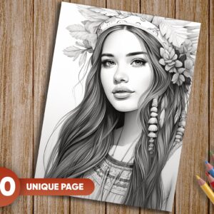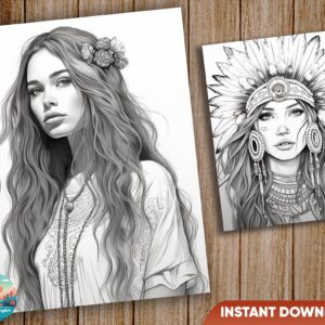 Welcome to our collection of stunning grayscale coloring pages for adults! Dive into the mesmerizing world of Boho Girls with our Beautiful Girl and Hippy Girl themed coloring pages. This printable PDF/JPEG set includes a generous selection of 50 unique designs that promise to awaken your creativity and provide hours of relaxation.