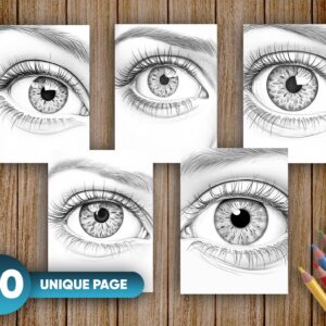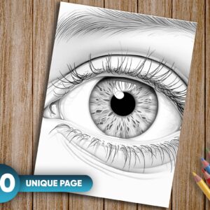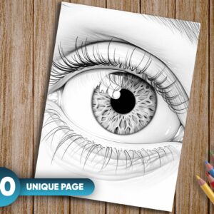 30 meticulously designed grayscale coloring pages featuring a diverse array of enchanting eyes