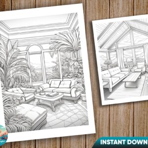 This digital product includes 1 PDF file and 25 high-quality JPEG files of beautiful and intricate interior design coloring pages. The pages are perfect for adults who love to color and want to relax and de-stress. They are also a great way to get creative and express your artistic side.