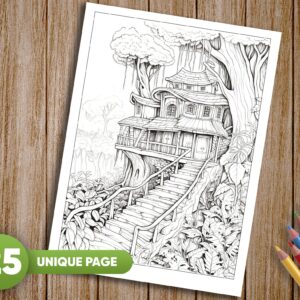 Welcome to the “Tree House Coloring Pages for Adults and Kids” Etsy store! Immerse yourself in the beauty of nature with this grayscale coloring book, available in a printable PDF format. With 25 stunning illustrations and a variety of JPEG files, this coloring book is suitable for both adults and kids to enjoy.