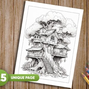 These grayscale coloring pages are not only a delightful way to spend your leisure time but also make a perfect gift for loved ones of all ages. Whether it’s for a birthday, holiday, or simply to show your appreciation, the “Tree House Coloring Pages for Adults and Kids” grayscale coloring book is sure to bring joy and inspiration.