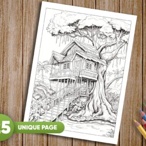 Both adults and kids can find joy and relaxation in coloring these tree house illustrations. Escape the hustle and bustle of everyday life and enter a world of tranquility and natural beauty. Coloring can be a therapeutic and calming activity, offering a moment of mindfulness and creative expression.